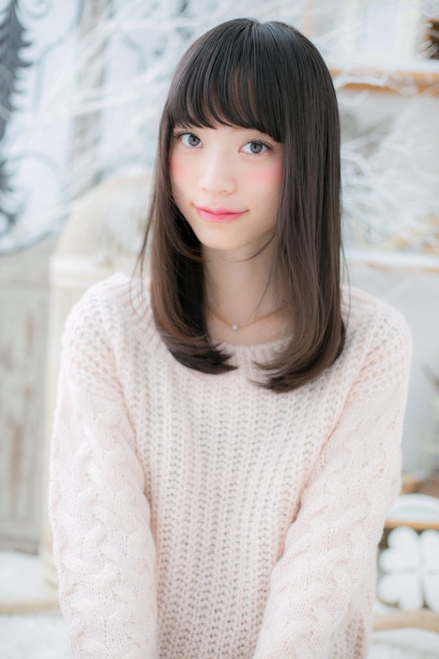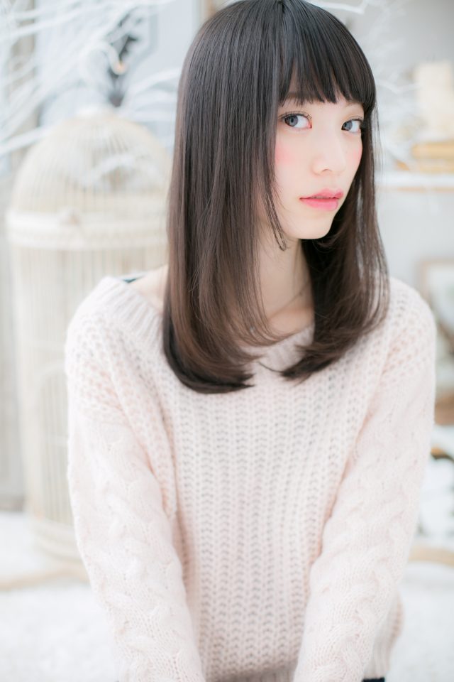 厚めバング&ワンカールストレートの黒髪ナチュラルストレートのへあスタイル。大人かわいい上品スタイルは好感度バッチリの優秀ヘア。斜めバングや耳かけでラブガーリーにヘアアレンジしたりセンターパートも◎トリートメントしたようなカラーリングで髪の毛の悩みも解決!人気のカラーやピンク系のカラーもおすすめ30代・40代にも◎(メイク担当:COVERHAIRGROUP成田)