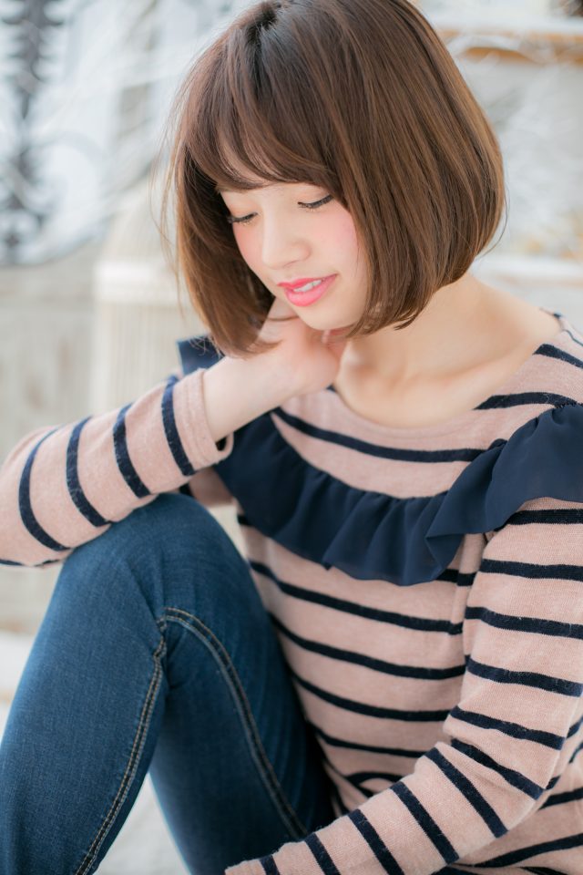 クールな前下がりボブは、ノーバングで大人っぽくしたり、ぱっつんバングや厚めバングで個性的にしても大人かわいい。ガーリーな耳かけもOK。ローレイヤーや黒髪の重めスタイルもモード&クラシカルでGOOD。ヒアルロン酸カラーは白髪にも対応可。