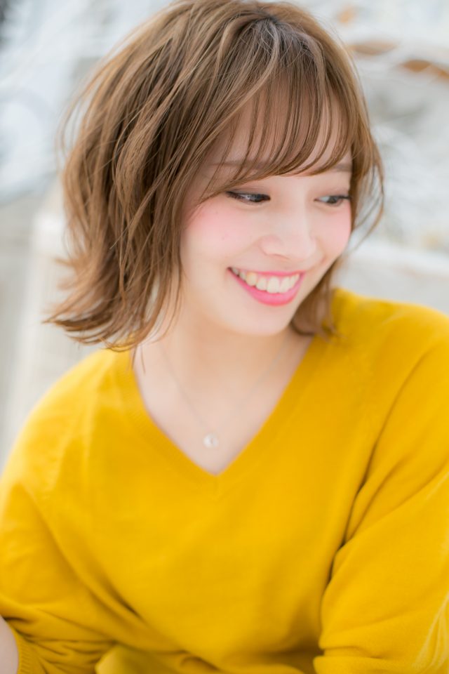 透け感ある仕上がりで前下がりフォルムを作り、小顔にメイクしたフェミニンボブのヘアスタイル。ナチュラルボブや大人ボブからのヘアアレンジにピッタリ。斜めバングや厚めバングで目力強調したり、大人かわいい耳かけもお似合い。ミディアムヘアを際立たせるグラデーションやトリートメントしたようなカラーリングで大人女子のコーデを完成!30代・40代にもおすすめ!