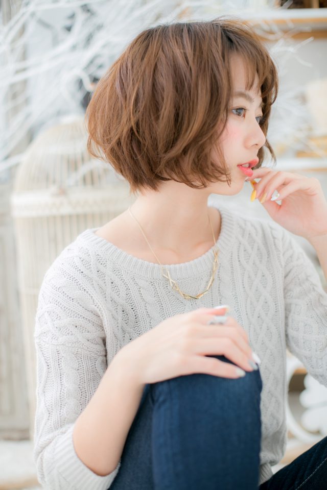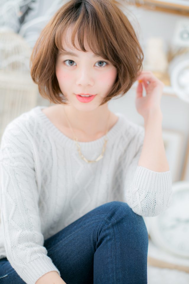 前下がりボブは、くせ毛風カールをつけてエアリーな抜け感を出すのもGOOD。ふわミディやセミディへの伸ばしかけにも◎無造作にかきあげて色っぽくしたり、大人かわいい耳かけもOK。黒髪やマーメイドアッシュで旬顔。