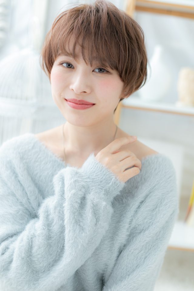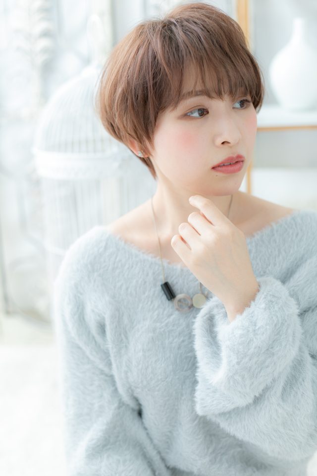 大人かわいい斜めバングナチュラルショート