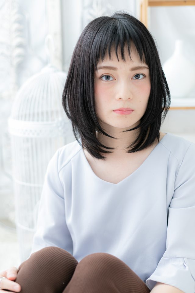黒髪で清潔感…ナチュラル前下がりボブディ