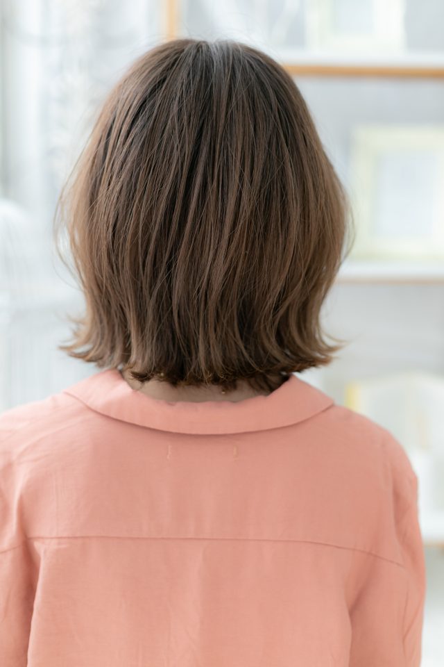 - 前下がりで輪郭カバーして小顔見せ/ナチュラルボブやフェミニンボブ,大人ボブや前下がりボブからの伸ばしかけにオススメ/外ハネカールでラブカジュアルにしたり,内巻きワンカールも好感度大の上品レディ/20代/30代/40代