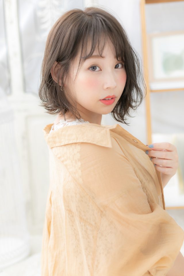 シースルーバングで透け感を出したゆるふわミディ。斜めバングや厚めバングで小顔見せしたり、前下がりな髪型も大人かわいい。耳かけアシンメトリーやくせ毛風無造作パーマもトレンド。(メイク担当:COVERHAIRGROUP棟方)