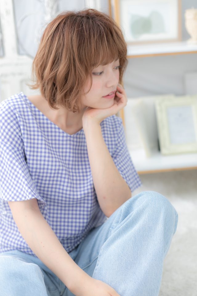 やわらかなゆるふわ質感でガーリーに仕上げたくせ毛風エアリーボブ。ナチュラルボブやフェミニンボブ、大人ボブや前下がりボブからのイメチェンにGOODな髪型。耳かけしてアシンメトリーにしたり、前下がりで小顔見せが◎