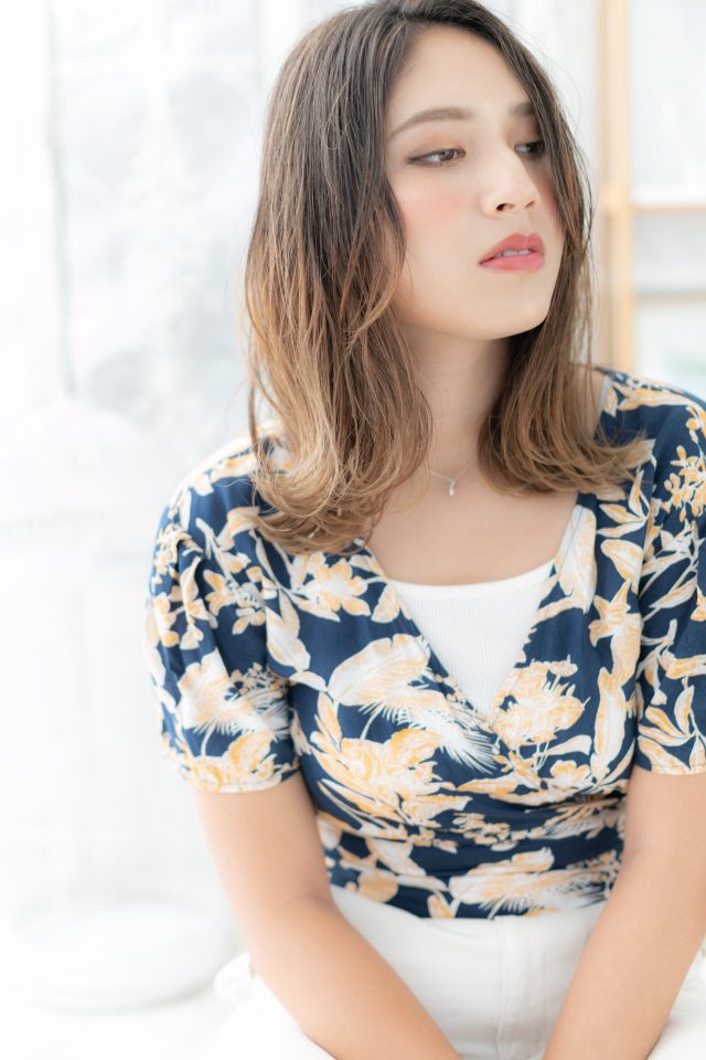 アシンメトリーグラデーションカラー小顔ロブ