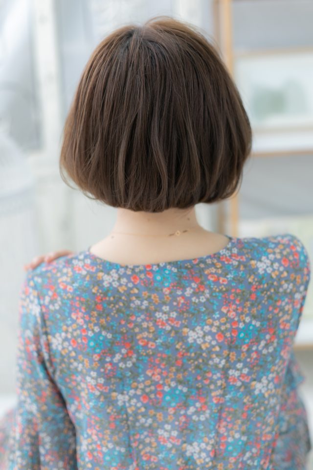 小顔に見せるAラインシルエットでやわらかな印象に仕上げたフェミニンボブのヘアスタイル。ミディアヘアを際立たせるグラデーションで大人女子のコーデもおすすめ!30代・40代にも◎(メイク担当:川口店 成田)