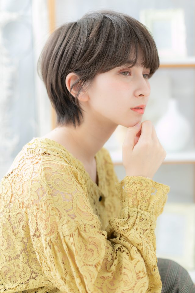 シンプルなマッシュショートはカラーで透明感をプラス。斜めバングや厚めバングで目力UPで大人女子のファッションどUP。外国人風アッシュやダークグレージュで髪の毛の悩みも解決!人気のカラーもおすすめ!(メイク担当:COVERHAIRGROUP中田)