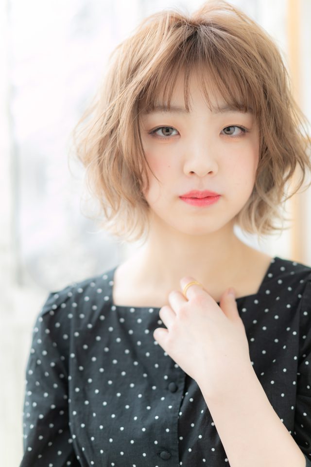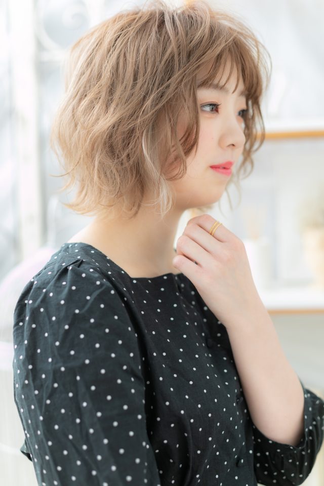 大人かわいいハイトーンくせ毛風ボブウルフ