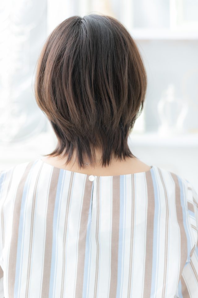 ナチュラルボブやフェミニンボブ、大人ボブや前下がりボブからの伸ばしかけに。斜めバングや厚めバング、小顔前下がりも目力UP。耳かけやくせ毛風ゆるふわミディ、ウルフも大人かわいい。(メイク担当:川口店 成田)
