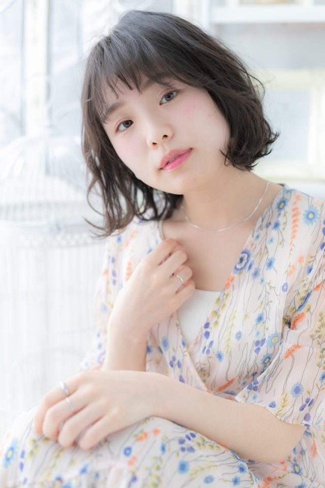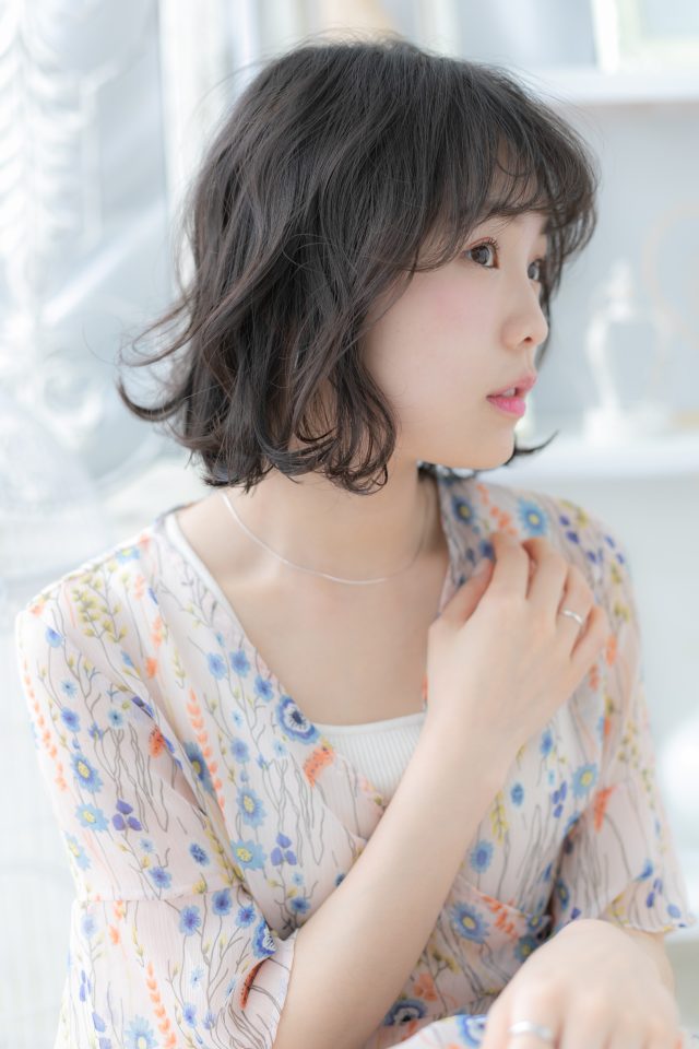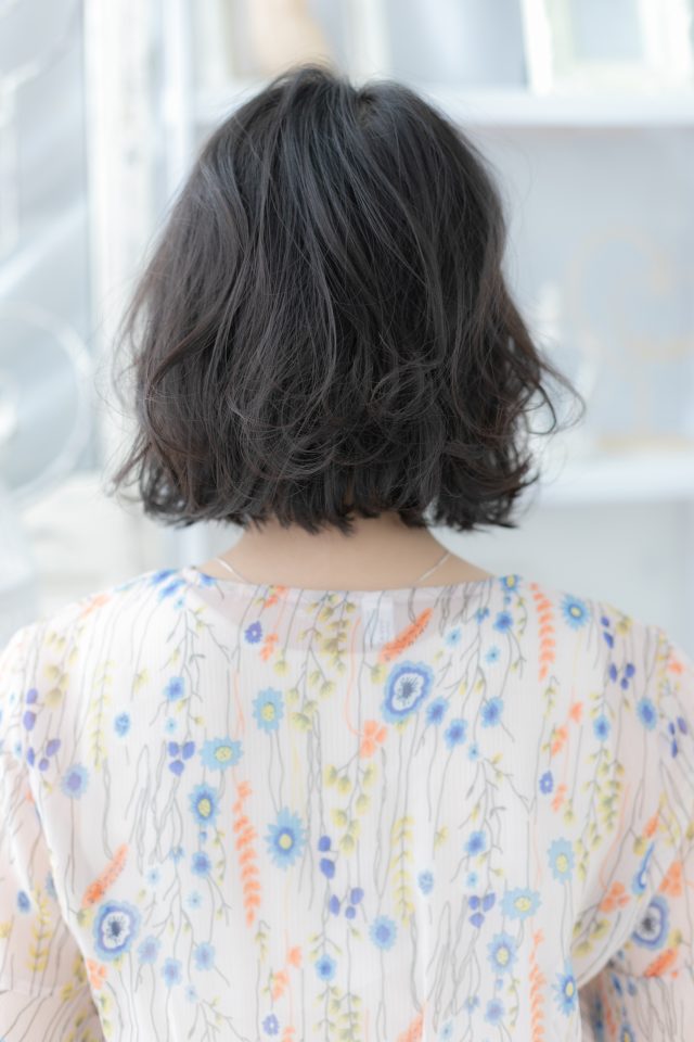 グレイアッシュ黒髪くせ毛風小顔エアリーボブ