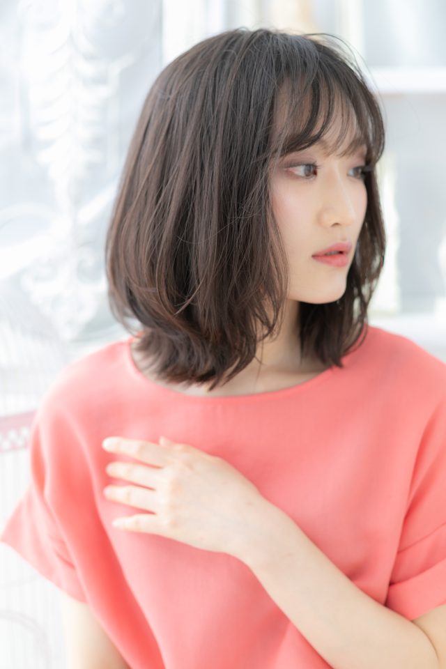 斜めバングや厚めバング、シースルーバングが大人かわいい。ナチュラルボブやフェミニンボブ、大人ボブや前下がりボブも◎くせ毛風ゆるふわミディやウルフ、小顔耳かけ前下がりもGOOD。(メイク担当:川口店 岩淵)