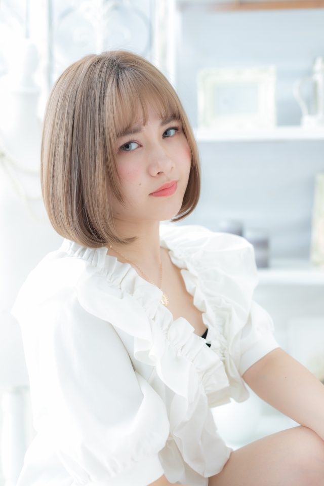 大人ハイライトで外国人風ツヤ髪小顔大人ボブ