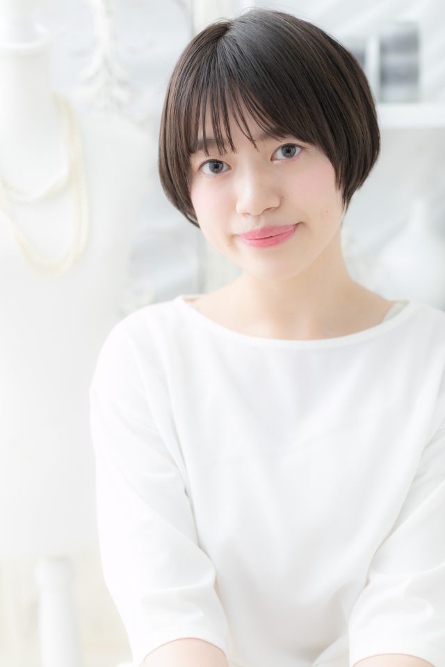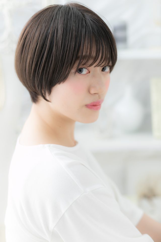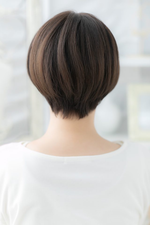シースルーバング黒髪丸みショート大人ボブ