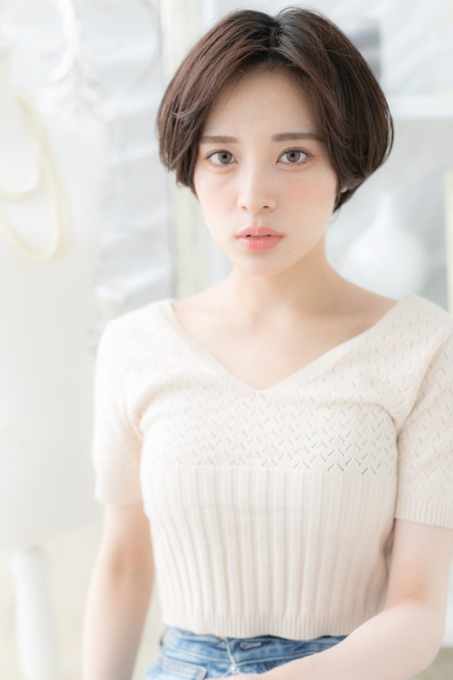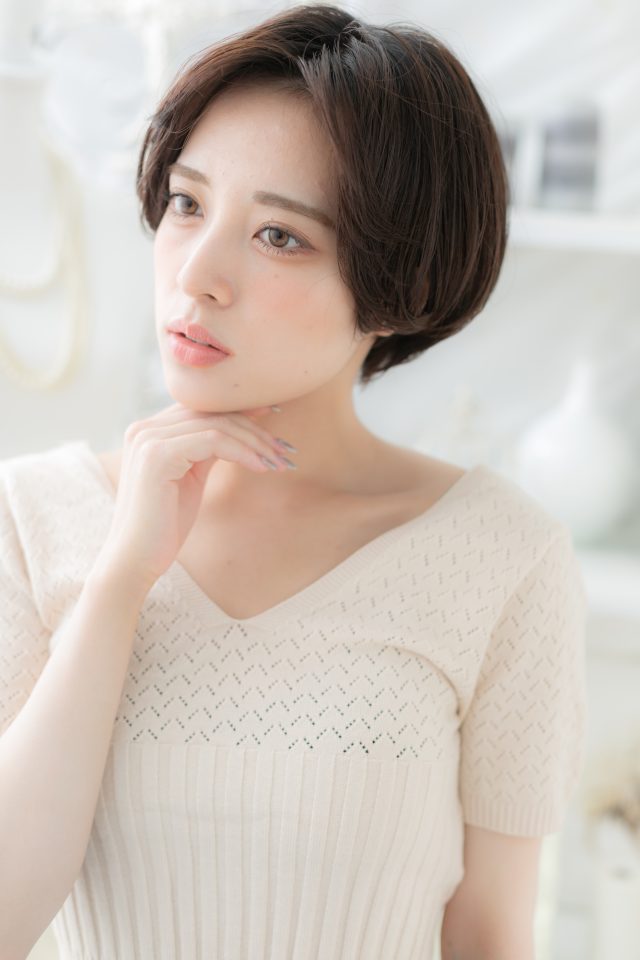 前下がりで小顔見せした丸みショート。ナチュラルボブやフェミニンボブ、大人ボブや前下がりボブ、ミニボブからのイメチェンに。斜めバングや厚めバングで目力UP。くせ毛風ゆるふわミディや耳かけウルフも大人かわいい。