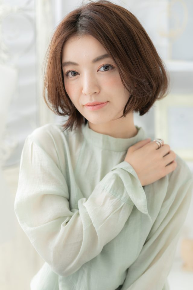 ナチュラルボブやフェミニンボブ、大人ボブや前下がりボブからのイメチェンに。斜めバングや厚めバングも大人かわいい。くせ毛風ゆるふわミディや耳かけエアリーミディ、前下がりも小顔見せ。(メイク担当:上尾店 中田)
