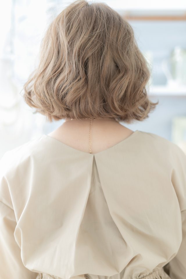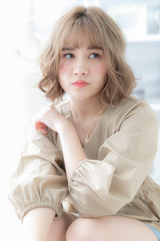 斜めバングや厚めバング、前下がりで小顔。くせ毛風ゆるふわミディや耳かけミニボブも大人かわいい。ナチュラルボブやフェミニンボブ、大人ボブや前下がりボブ、ミニボブからのイメチェンに◎(メイク担当:上尾店 中田)