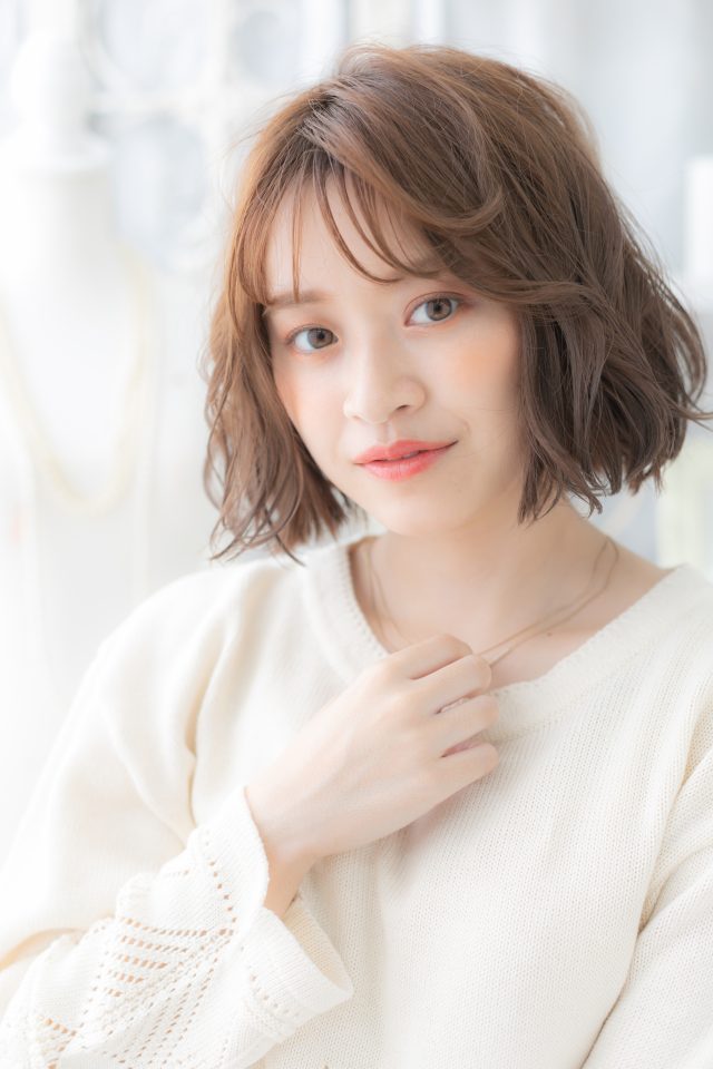 ナチュラルボブやフェミニンボブ,大人ボブや前下がりボブ、ミニボブで小顔。斜めバングや厚めバング,かきあげ前髪が大人かわいい。くせ毛風ゆるふわミディや耳かけ前下がりウルフも人。(メイク担当:COVERHAIRGROUP成田)