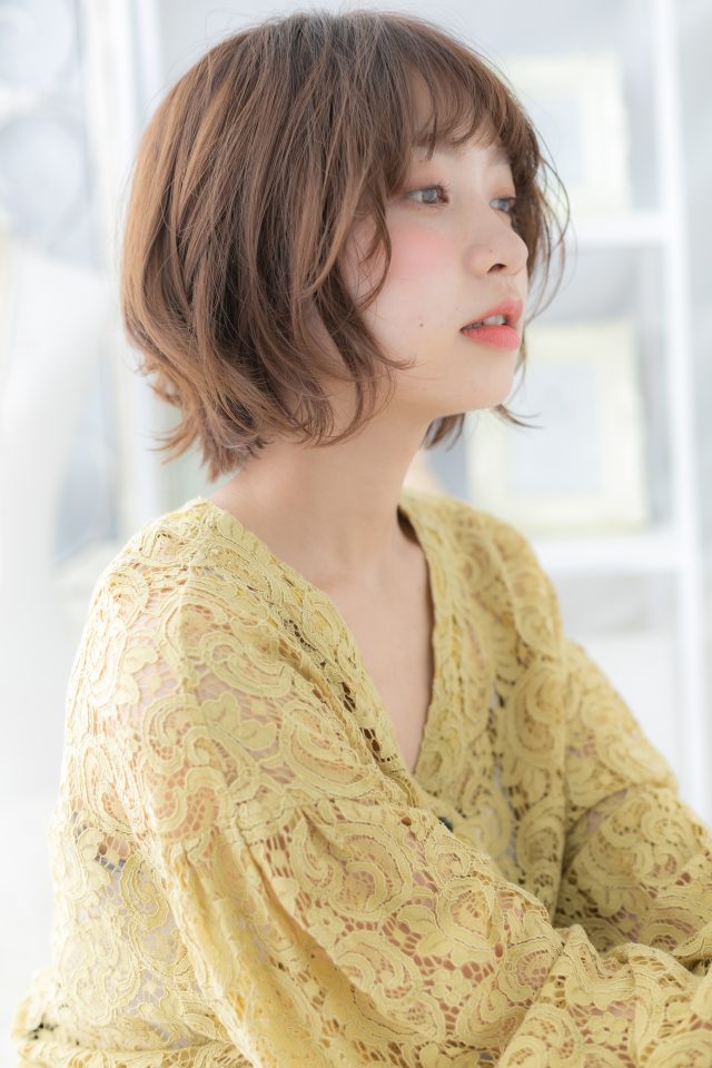 暖色系カラーラフニュアンス韓国風くびれボブ