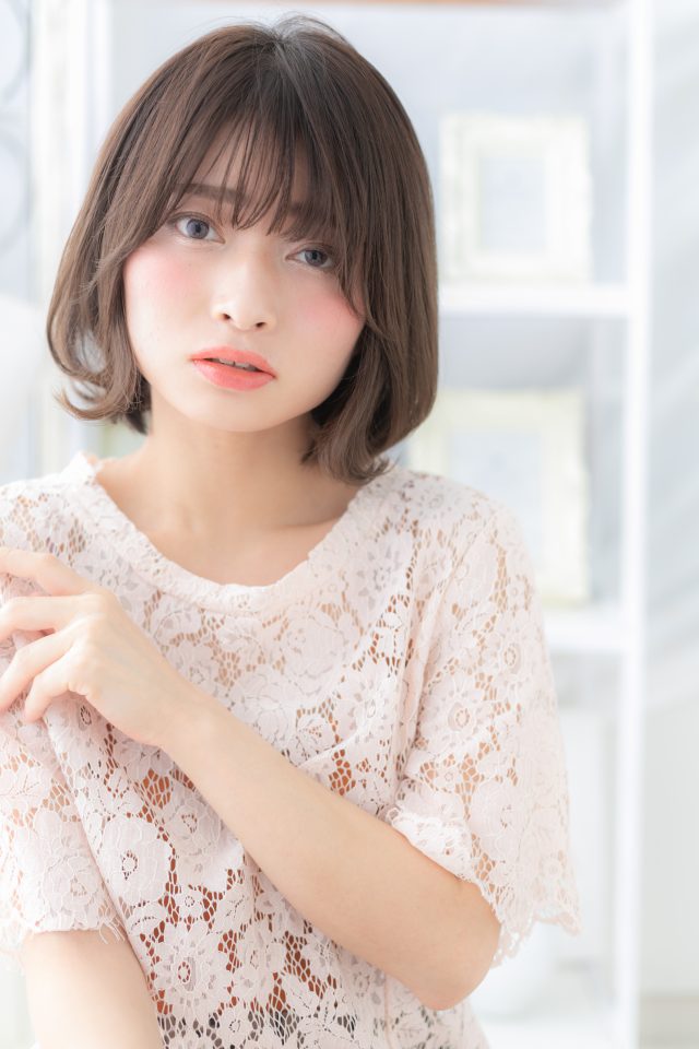 ナチュラルボブフェミンボブ、大人ボブ前下がりボブ、ミニボブマッシュボブも大人かわいい。斜めバング厚めバング、かきあげ前髪で小顔。くせ毛風ゆるふわミディや耳かけ前下がりウルフも◎(メイク担当:上尾店 中田)