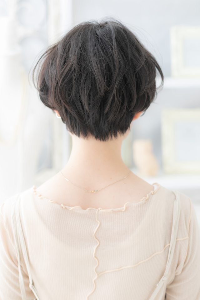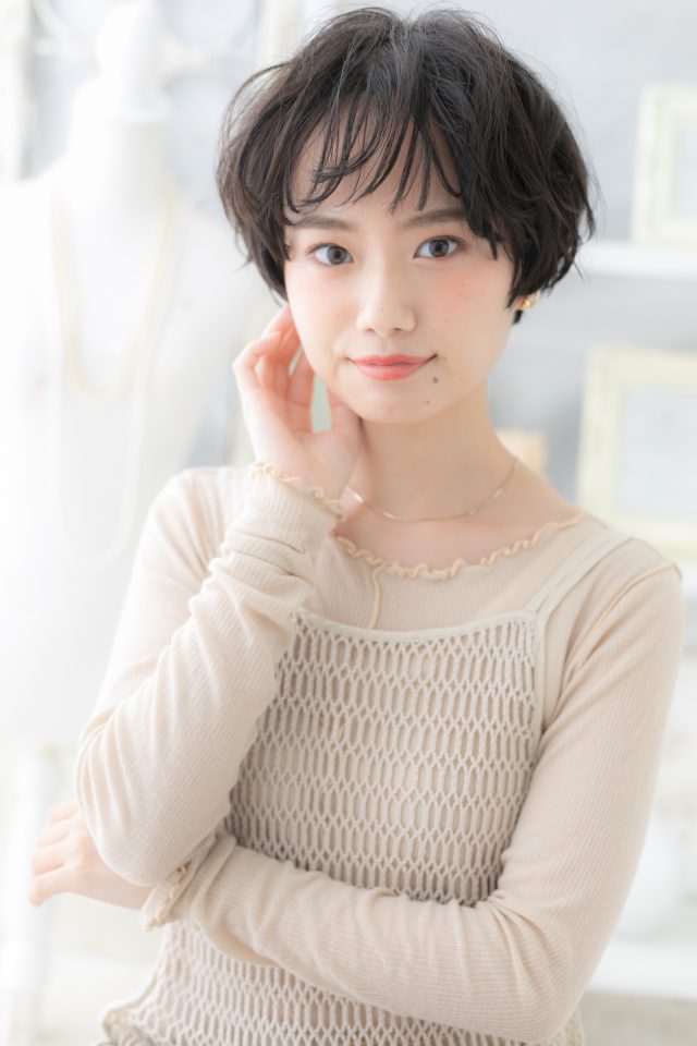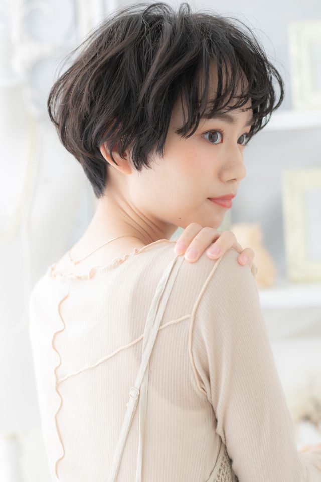 黒髪くすみカラーくせ毛風マッシュショート