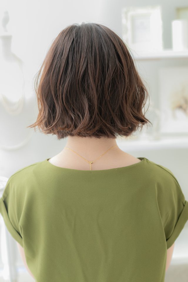 アシンメトリーかきあげ前髪くせ毛風小顔ボブ