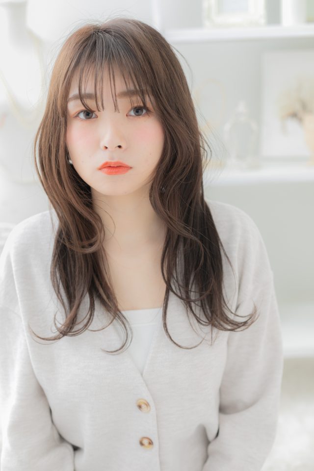 斜めバング厚めバングも大人かわいい。ナチュラルボブフェミニンボブ、大人ボブ前下がりボブ、ミニボブマッシュボブで小顔。くせ毛風ふわミディや前下がりウルフも人気。(メイク担当:COVERHAIRGROUP中田)