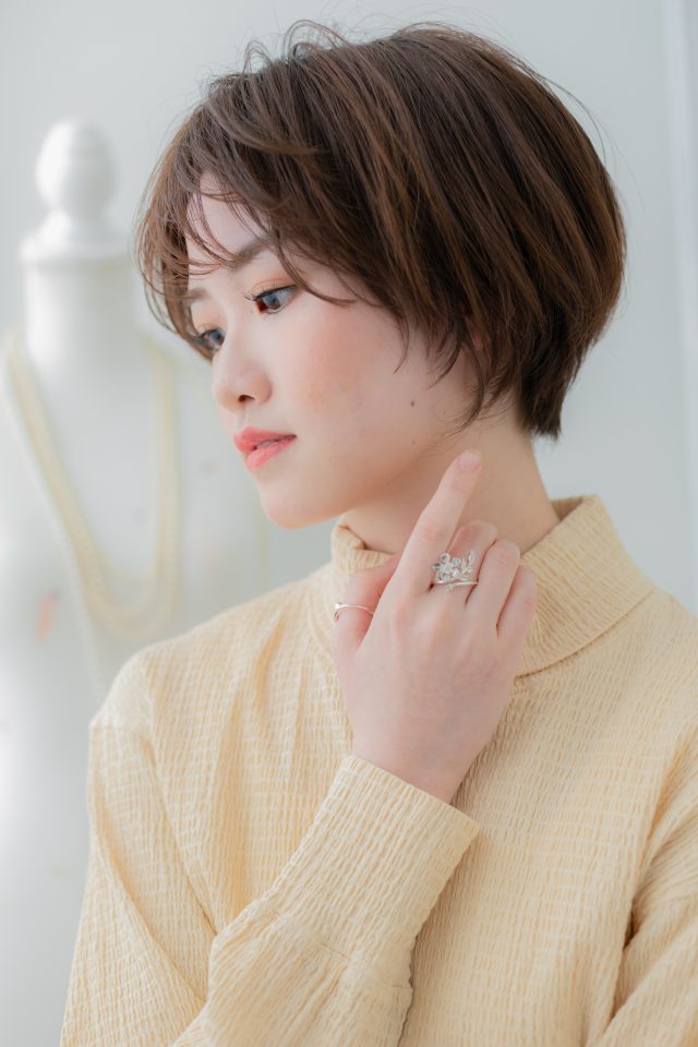 斜めバング厚めバングかきあげ前髪が大人かわいい。ナチュラルボブフェミニンボブ、大人ボブ前下がりボブ、マッシュボブで小顔。くせ毛風ゆるふわミディや耳かけ前下がりウルフも人気。(メイク担当COVERHAIRGROUP成田)