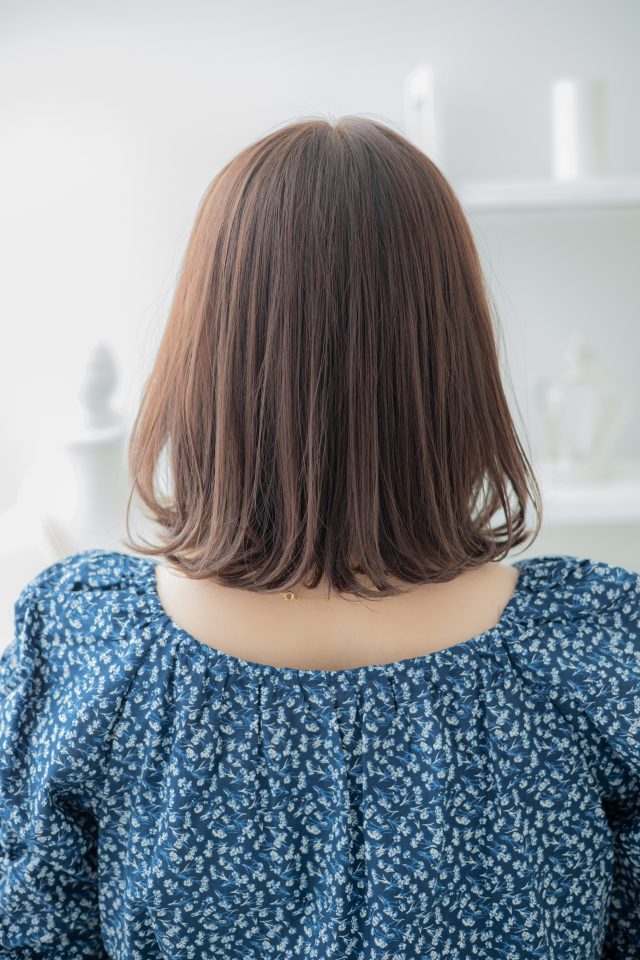 ミルクティーピンク前下がり内巻きワンカール