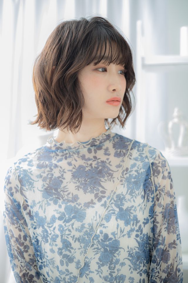 斜めバング厚めバング、シースルーバングかきあげ前髪で小顔。大人ボブ切りっぱなしボブ、ナチュラルボブフェミニンボブ、マッシュボブミニボブも人気。くせ毛風ゆるふわミディや耳かけ前下がりウルフも大人かわいい。