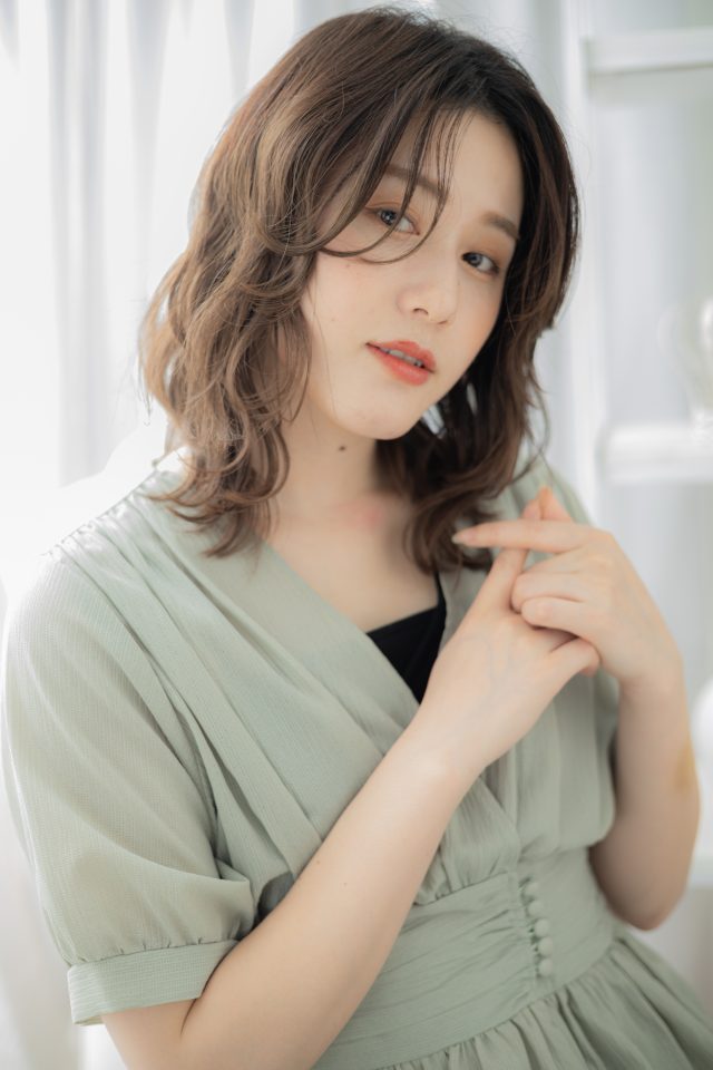 斜めバング厚めバング,シースルーバングかきあげ前髪で小顔。くせ毛風ゆるふわミディや耳かけ前下がりウルフも大人可愛い。切りっぱなしボブミニボブ,マッシュボブナチュラルボブも人気。(メイク担当COVERHAIRGROUP岩渕)