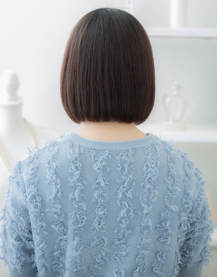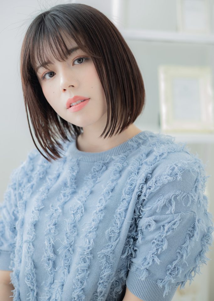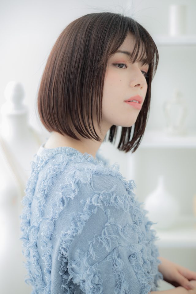 ツヤ髪小顔シースルーバング切りっぱなしボブ