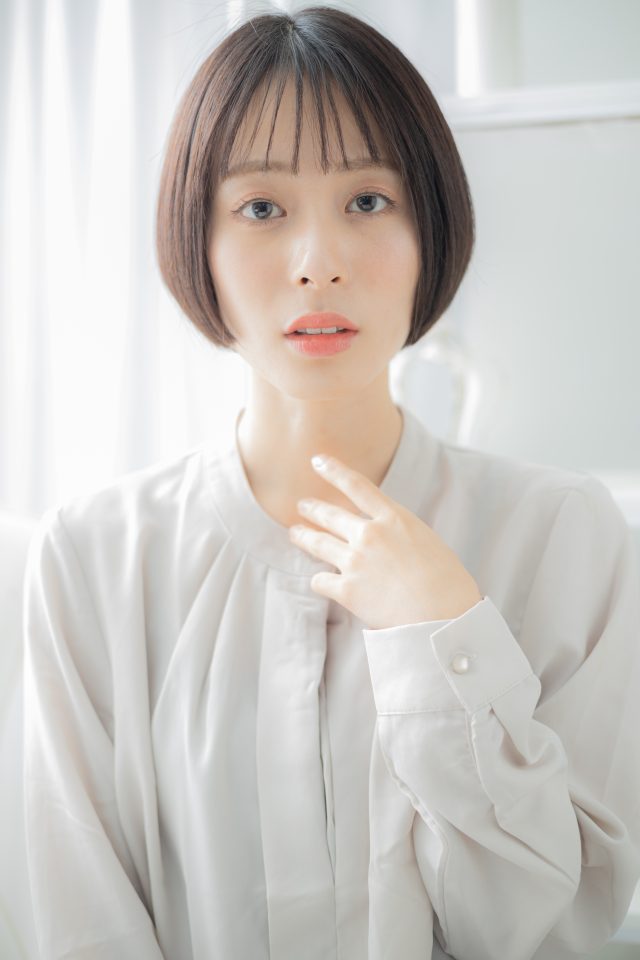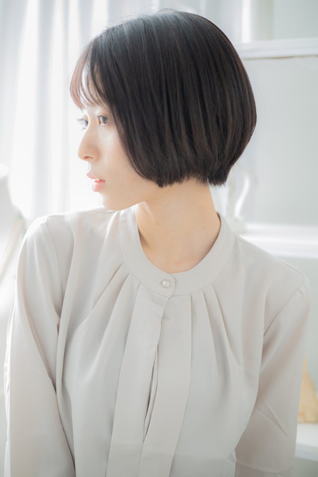 ナチュラルボブフェミニンボブ,大人ボブ前下がりボブ,マッシュボブも人気。斜めバング厚めバングシースルーバングで小顔。くせ毛風ゆるふわミディや耳かけ前下がりウルフも大人かわいい。(メイク担当COVERHAIRGROUP岩渕)