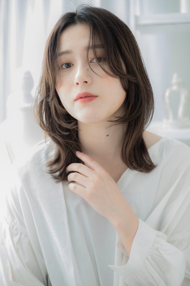 切りっぱなしボブマッシュボブ,ナチュラルボブフェミニンボブの伸ばしかけに◎斜めバング厚めバングシースルーバングで小顔。くせ毛風ゆるふわミディ,耳かけ前下がりウルフも大人かわいい(メイク担当COVERHAIRGROUP岩渕)