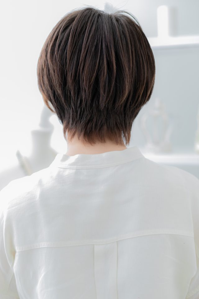 逆グラデーションカラーの韓国風ショートマッシュ。黒髪バレイヤージュやインナーカラーも人気。ナチュラルボブフェミニンボブ,大人ボブ前下がりボブ,切りっぱなしボブミニボブで小顔に。(メイク担当COVERHAIRGROUP成田)