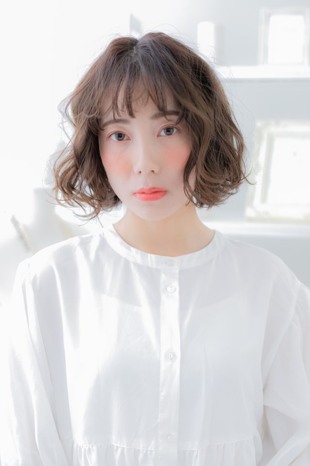 ミックスカール小顔くせ毛風ふわふわボブ