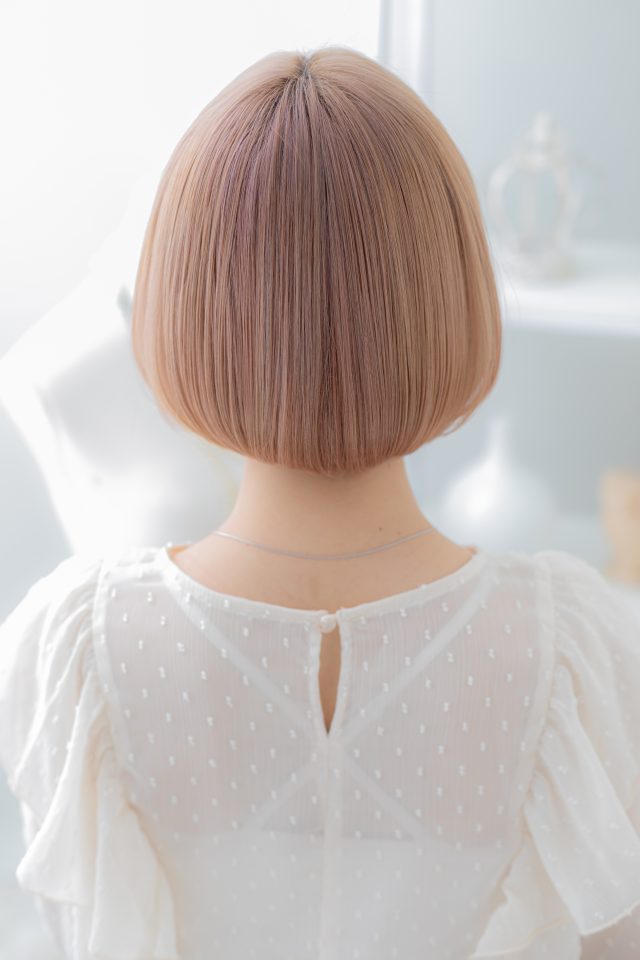 ハイトーンカラー外国人風前下がり金髪ボブ