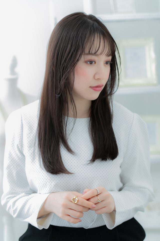 くせ毛風ゆるふわミディや前下がり耳かけウルフ、エアリーミディも大人かわいい。斜めバング厚めバング、シースルーバングかきあげ前髪で小顔。切りっぱなしボブマッシュボブ、ミニボブも人気。(メイク担当:上尾店大西)