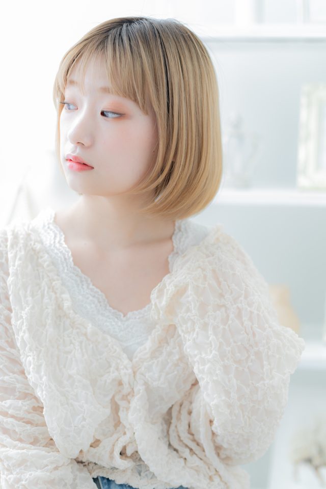 うるツヤミルクティーベージュ韓国風大人ボブ