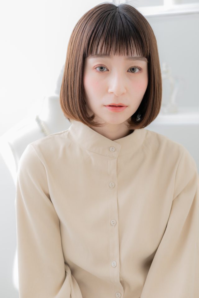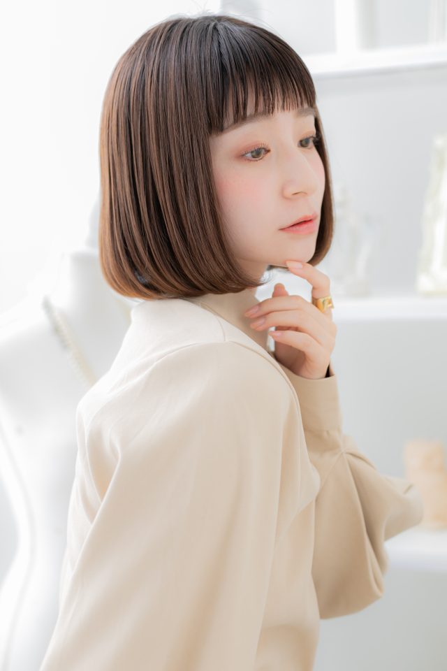 斜めバング厚めバング、シースルーバングかきあげ前髪で小顔。マッシュボブミニボブ、ナチュラルボブフェミニンボブも人気。くせ毛風ゆるふわミディや耳かけ前下がりウルフも大人かわいい。(メイク担当:北浦和店成田)