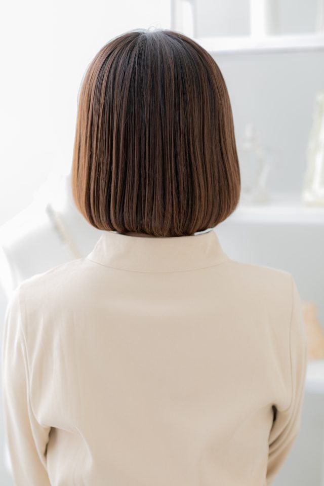 バレイヤージュ小顔前下がり切りっぱなしボブ