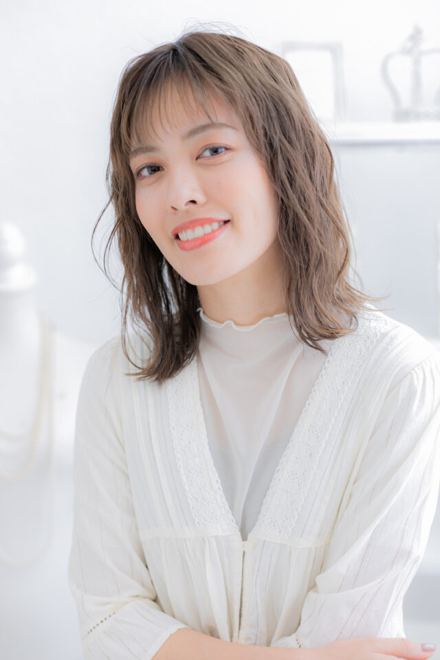 インナーカラーイヤリングカラー,バレイヤージュで外国人風。シースルーバングかきあげ前髪,斜めバング厚めバングで小顔。くせ毛風ゆるふわミディや耳かけ前下がりウルフも大人かわいい(メイク担当COVERHAIRGROUP伊与田)