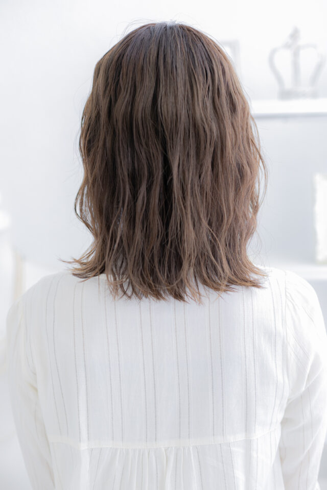 抜け感ウェットヘア小顔波巻きエアリーミディ