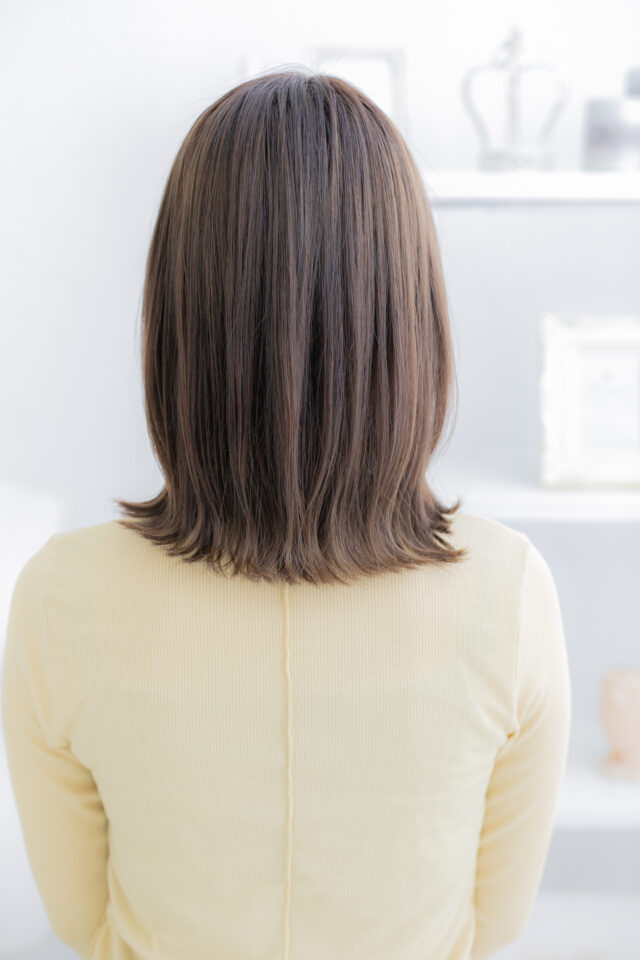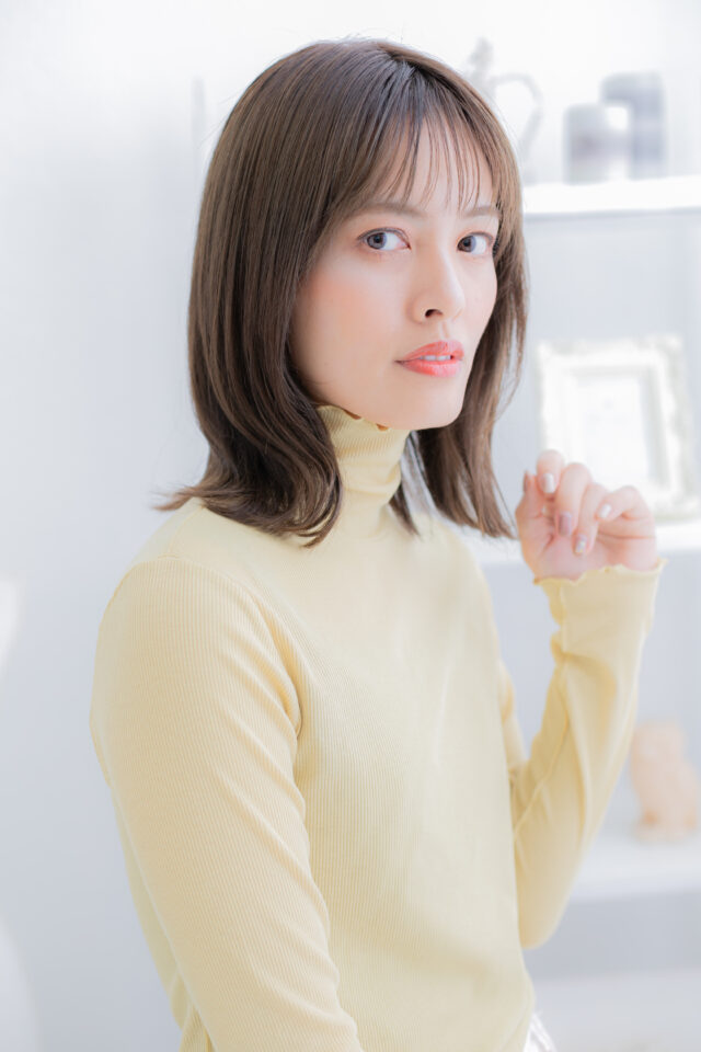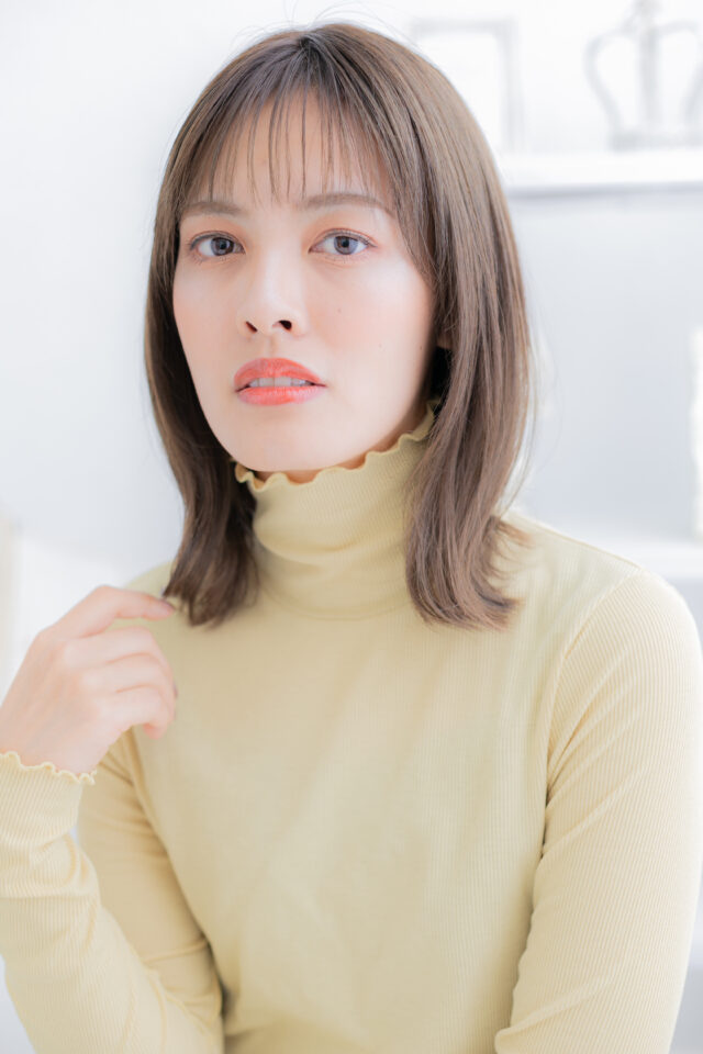 シースルーバングカーキベージュ小顔ミディ