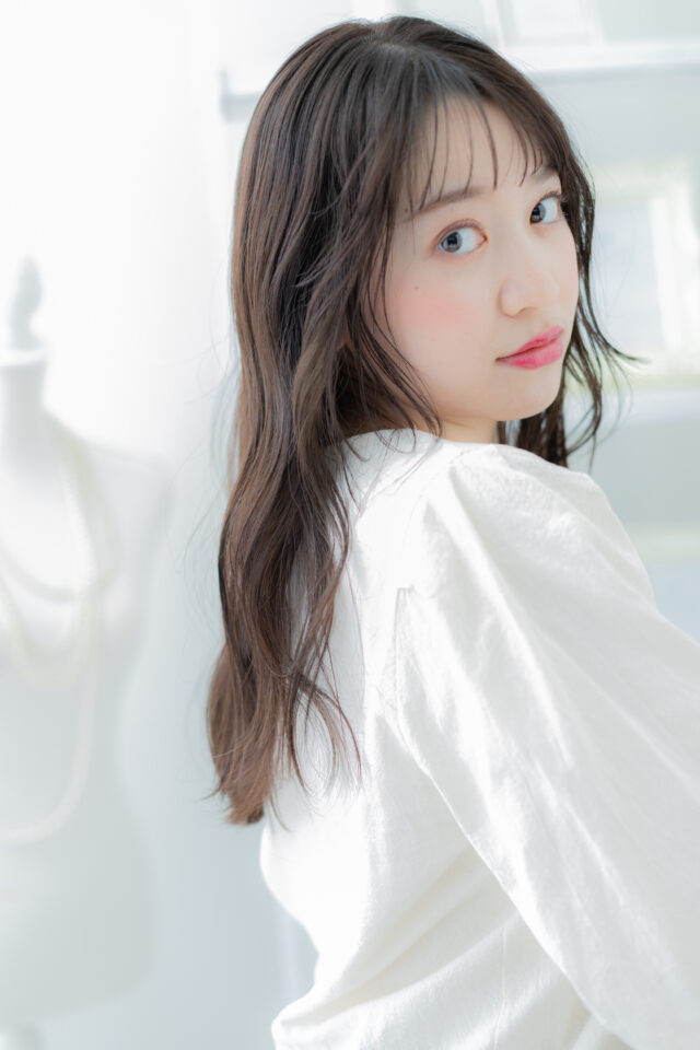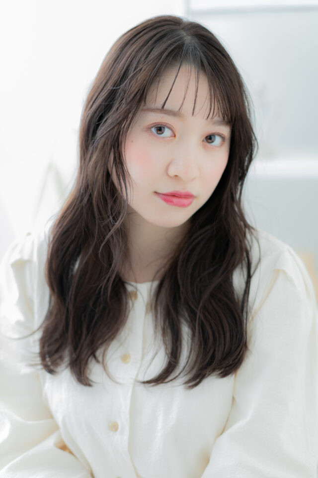 斜めバング厚めバング、シースルーバングかきあげ前髪で小顔。くせ毛風ゆるふわミディや前下がり耳かけウルフも大人かわいい。切りっぱなしボブミニボブ、ナチュラルボブフェミニンボブも人気。(メイク担当:上尾店大西)