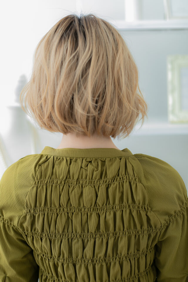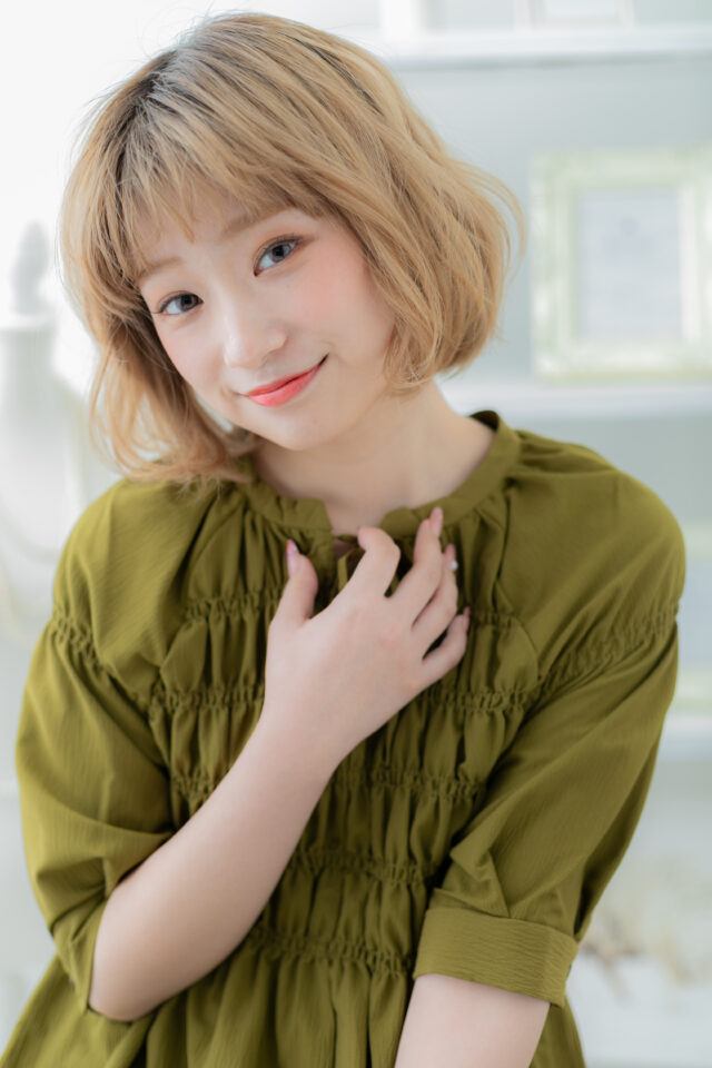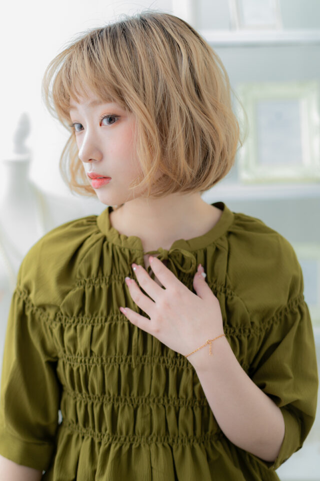 外国人風ハイトーンカラーゆるふわ小顔ボブ