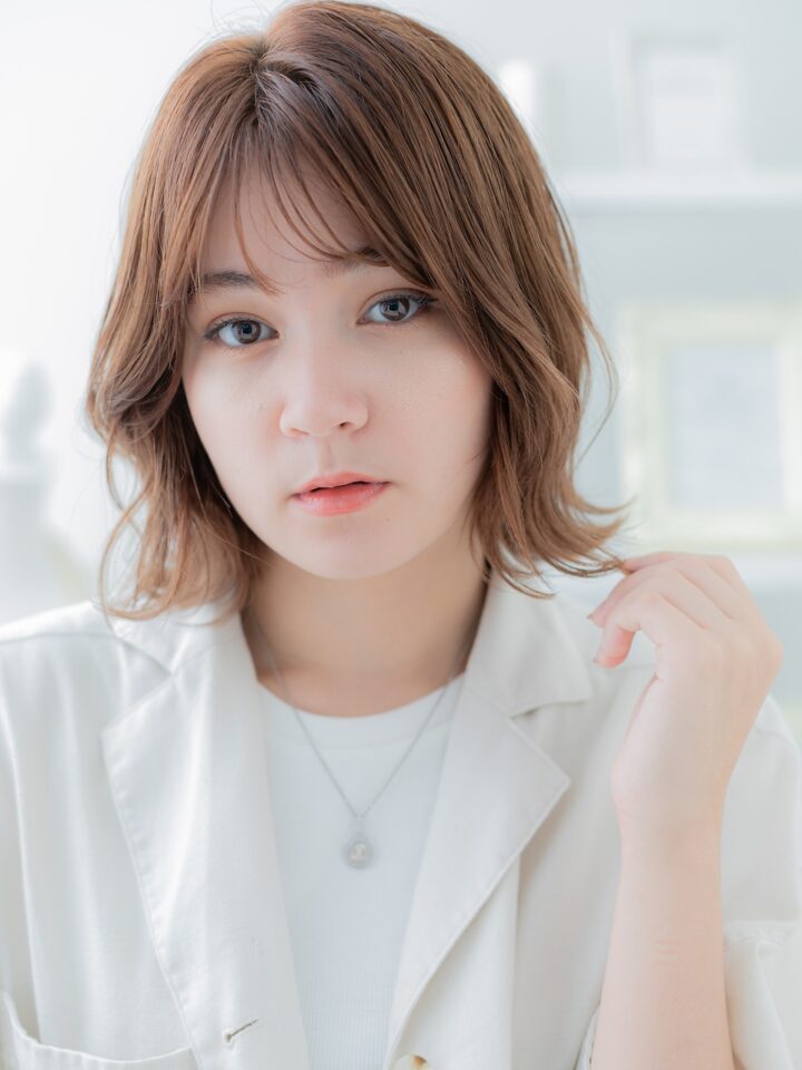 大人ハイライトくせ毛風外ハネボブウルフ20代30代40代