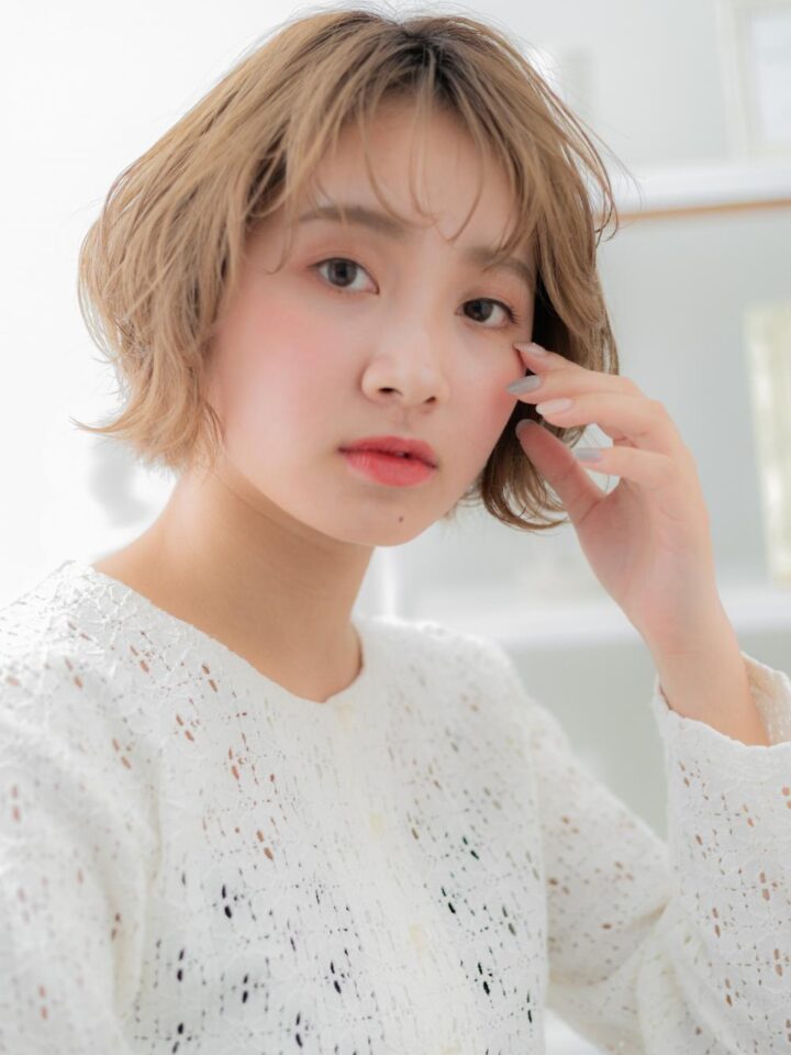 ハイトーンカラー小顔金髪ショートボブ20代30代40代