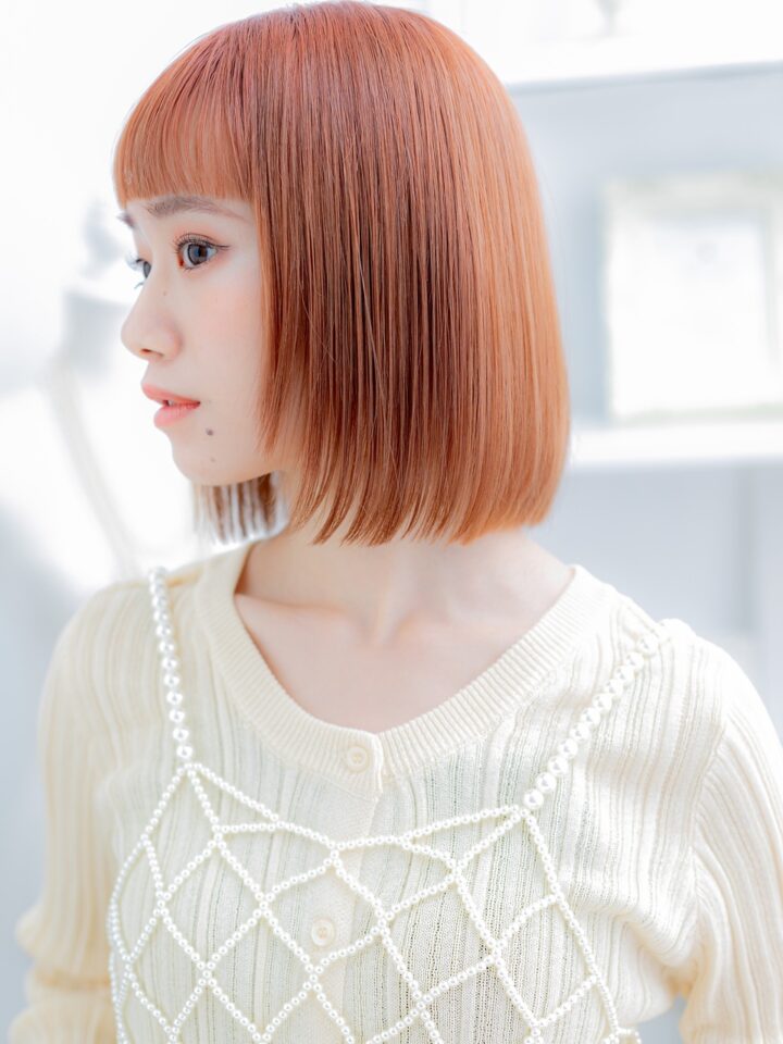 大人可愛いアプリコットオレンジ小顔ボブ20代30代