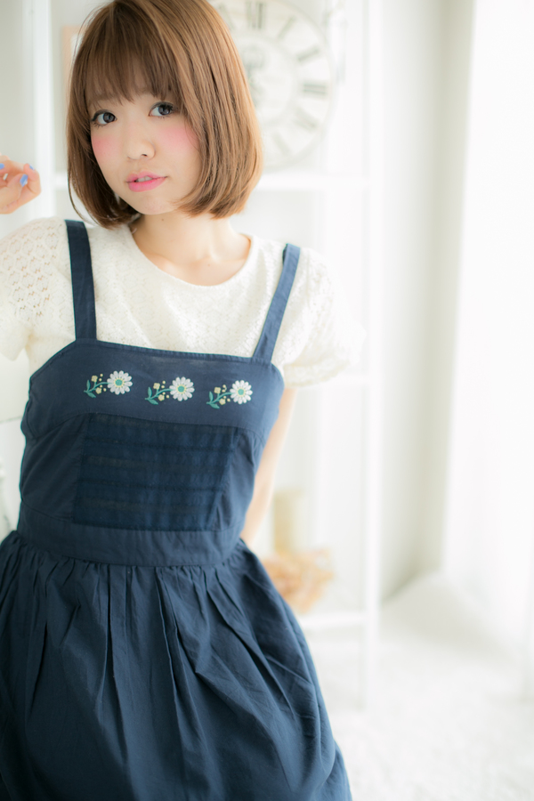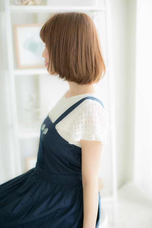 毛先にトリートメントオイルをなじませて、手グシでドライするだけの簡単スタイリング。顔周りをコロンとキュートに整えて小顔に♪